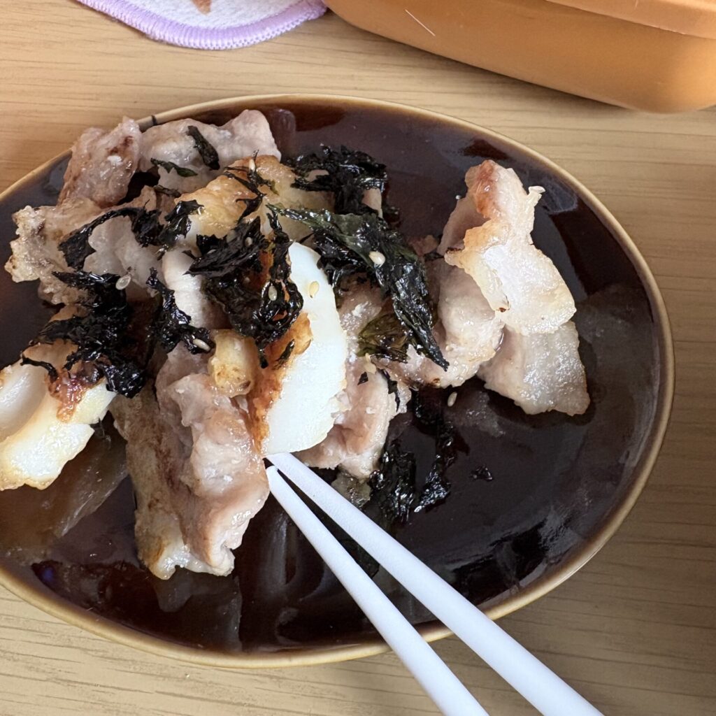 豚こまとイカの炒め物