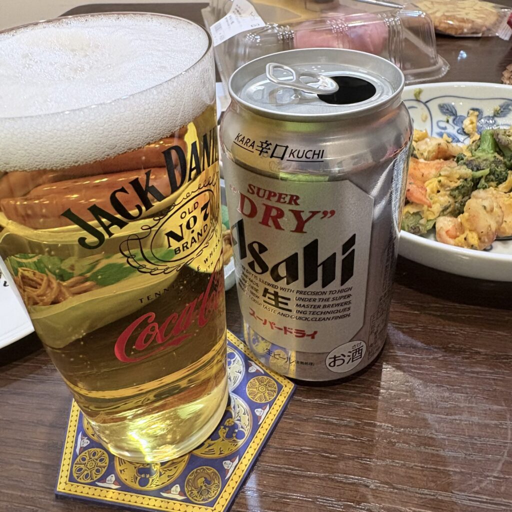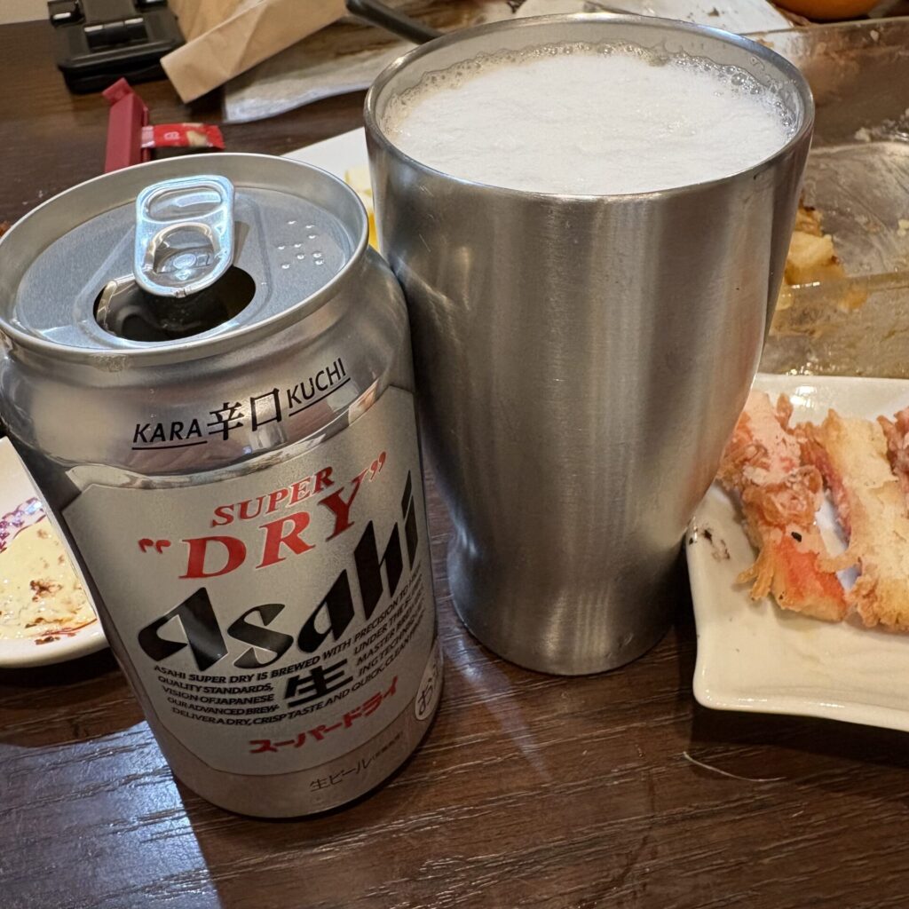 まずビール「アサヒスーパードライ」。350mlの缶だったので2缶。